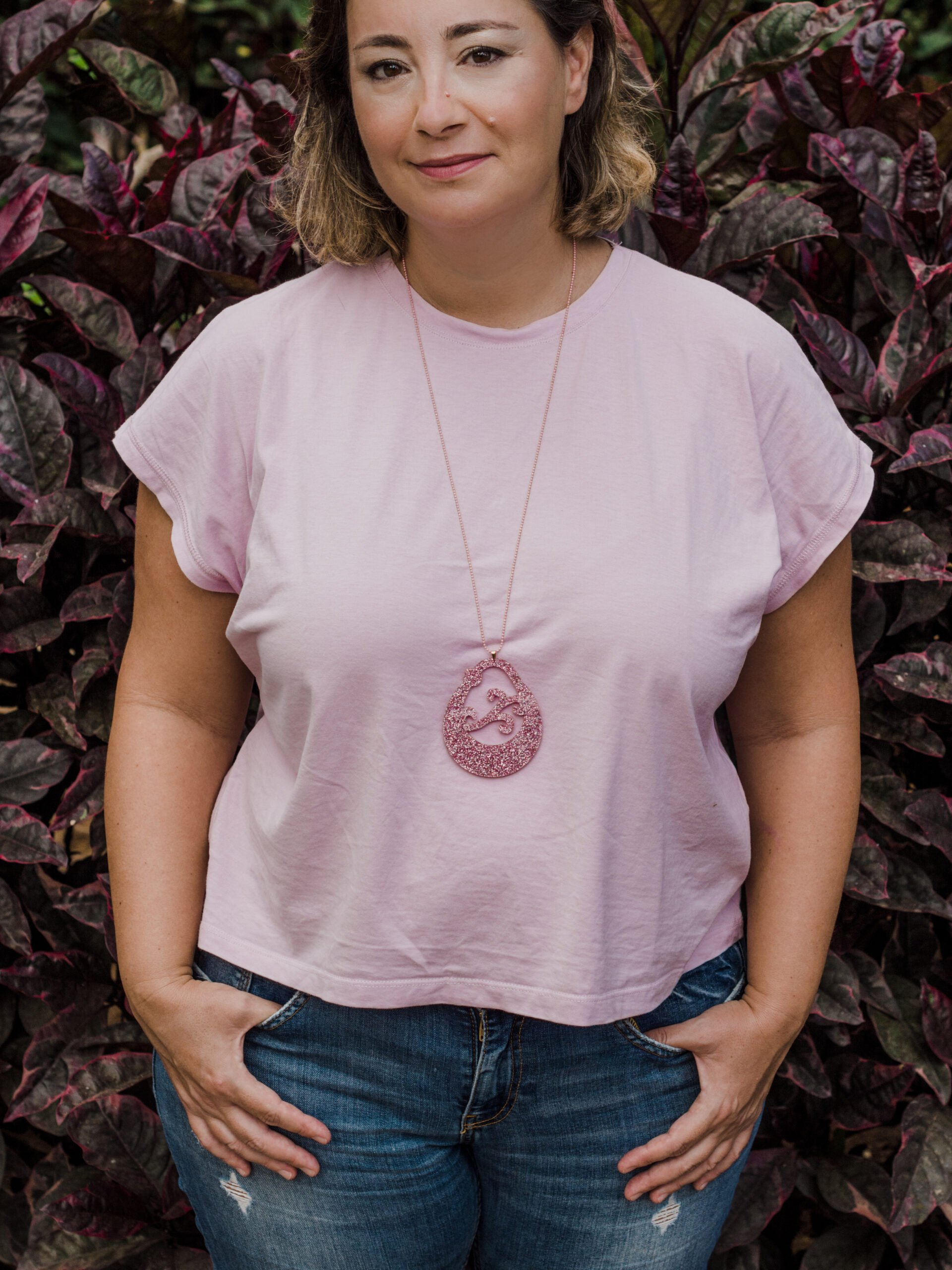 Collar largo con colgante de nuestro Aro canario clásico en metacrilato de diferentes colores